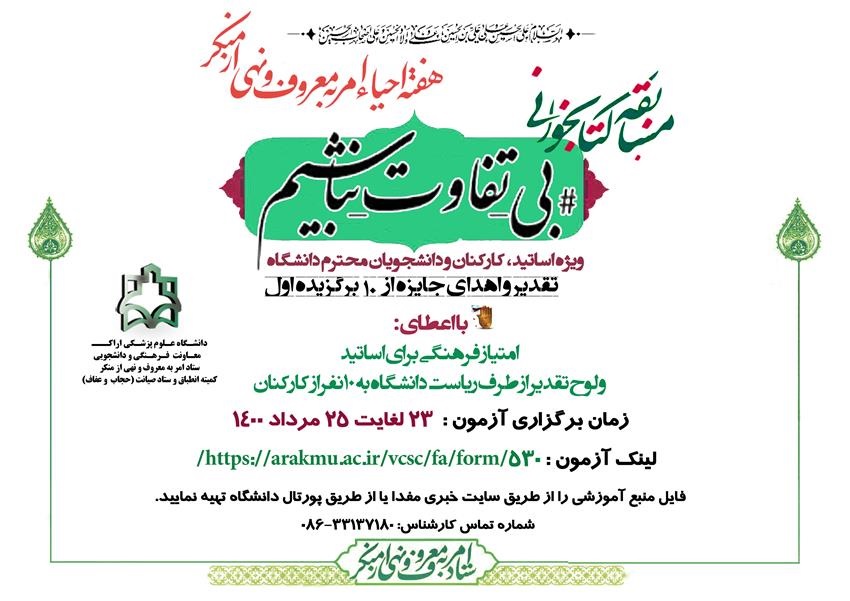 مسابقه کتابخوانی بی تفاوت نباشیم ۲۰ مرداد ۱۴۰۰ | ۰۹:۱۲ کد : ۱۹۲۷۳ اطلاعیه ارسال به دیگران نام شما ایمیل شما ایمیل دریافتکننده ارسال انصراف تعداد بازدید:۲۸۳۸۴ لینک ورود به آزمون