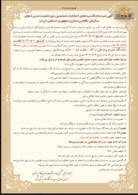 اطلاعیه ثبت نام کاندیداهای انتخابات ششمین دوره هیئت مدیره های سازمان نظام پرستاری ۰۷ مرداد ۱۴۰۲ | ۰۹:۲۲ کد : ۳۶۲۶۴ اطلاعیه ارسال به دیگران نام شما ایمیل شما ایمیل دریافتکننده ارسال انصراف تعداد بازدید:۱۵۵۹۸